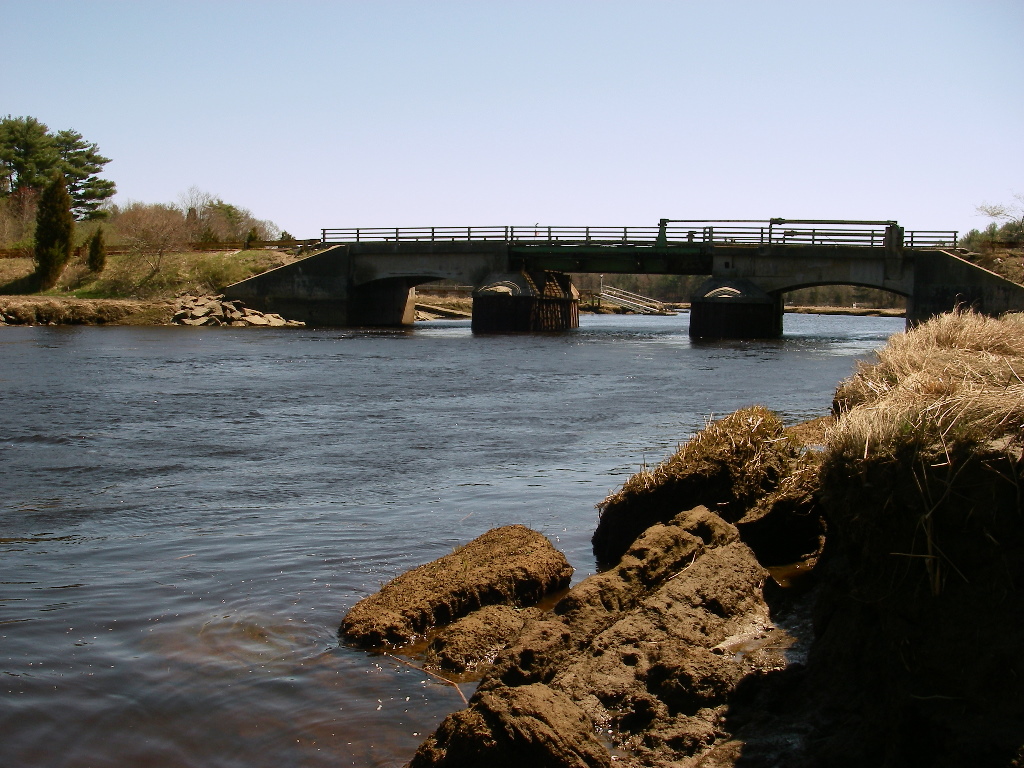 Coming from Norwell on Bridge Street, you cross over the North River into Marshfield (home of Daniel Webster) and ten yards on the right is the entrance to the parking area for the river access. A steep dirt road goes down to a shady parking area. There is one picnic bench and a (usually) overflowing trash can.