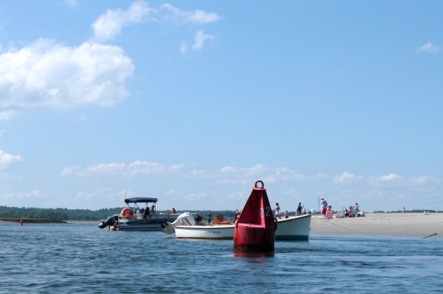 At very low tide the channel gets narrow and the buoy is close enough to spit at it from the sandbar. Hey! Maybe thats why they call it the Spit?