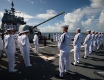 View looking southeast from the top of the USS Philippine Sea (CG 58) as it heads for the burial at sea service for Apollo 11 astronaut Neil Armstrong, Friday, Sept. 14, 2012, in the Atlantic Ocean. Armstrong, the first man to walk on the moon during the 1969 Apollo 11 mission, died Saturday, Aug. 25. He was 82.