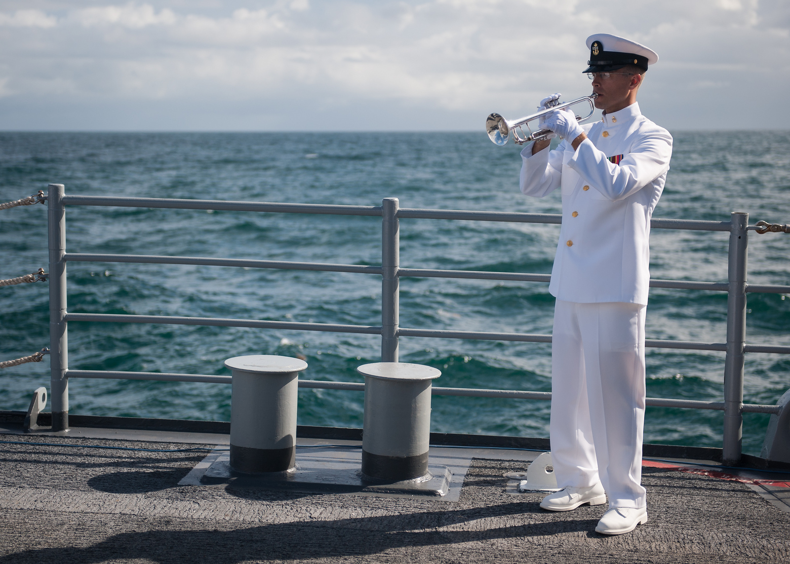 June Hoffman, sister of the late Neil Armstrong and Armstrong’s sons, Eric “Rick” Armstrong, center, and Mark Armstrong look out from the USS Philippine Sea (CG 58) as it departs Mayport, Fla. for the burial at sea service for Armstrong, Friday, Sept. 14, 2012. Armstrong, the first man to walk on the moon during the 1969 Apollo 11 mission, died Saturday, Aug. 25. He was 82.