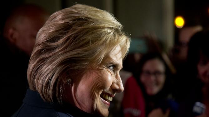 Democratic presidential candidate Hillary Clinton meets with supporters after taking part in the Democratic presidential primary debate with Sen. Bernie Sanders, I-Vt. Thursday, Feb. 4, 2016, in Durham, N.H. (AP Photo/Matt Rourke)