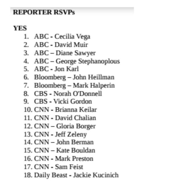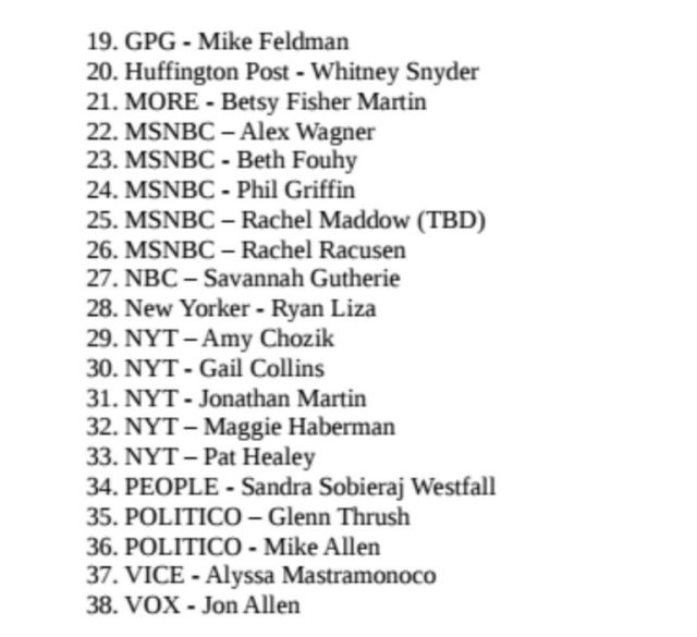 Podesta’s. As a reminder, this is with the 25 reporters more closely