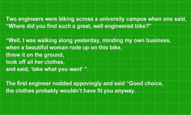 To lighten the tension, some engineering jokes:
