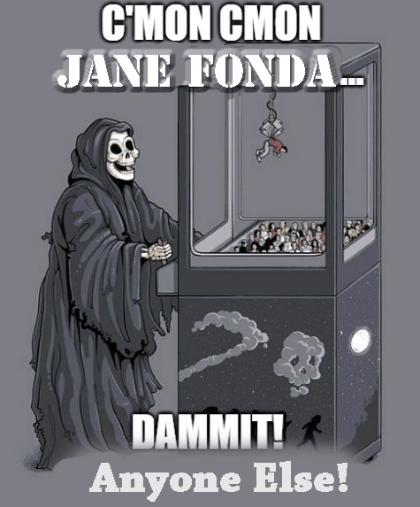 Jane Fonda declares that Climate Change is caused by males. Who must be exterminated.